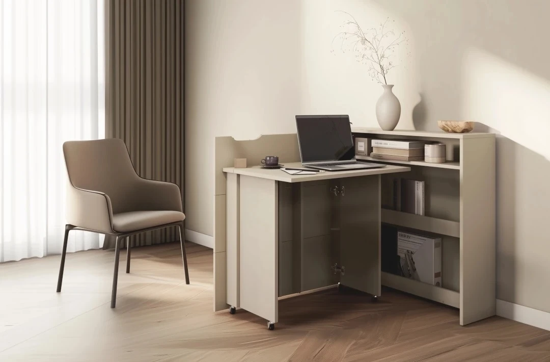 Ve složeném stavu vypadá psací stůl jako obyčejná komoda a jeho horní deska může sloužit k vystavení dekorací.