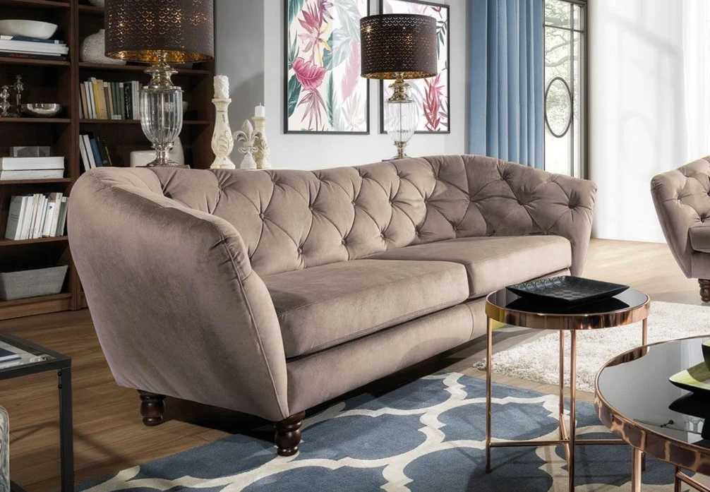 Můžete si také zvolit zda chcete knoflíky čalouněné v potahu pohovky, nebo sedačku ozdobíte krystalky.