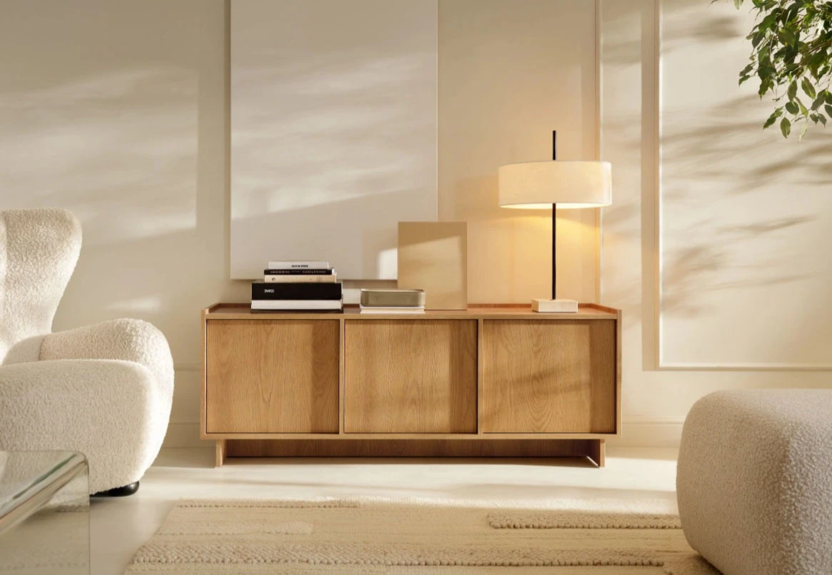 Jedinečné spojení minimalistických linií a karamelového dubu.