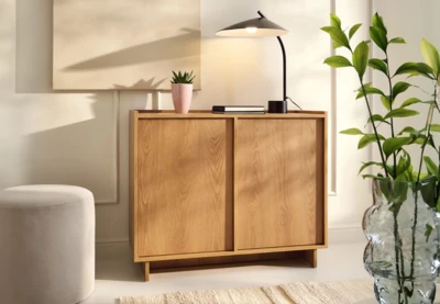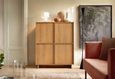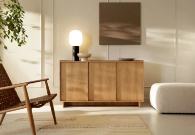 Jedinečné spojení minimalistických linií a karamelového dubu.